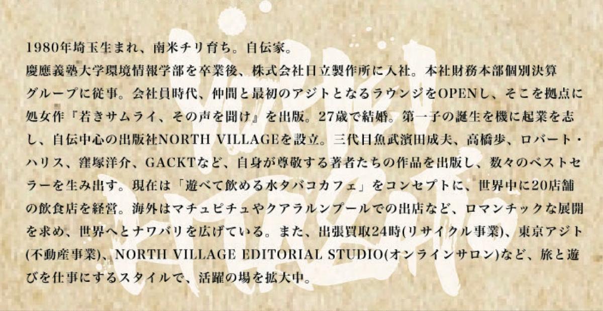PUBLICATION 出版事業 PUBLICATION BEST SELLER GACKTの勝ち方 窪塚洋介 三代目魚武濱田成夫 高橋歩 家入一真 ロバート・ハリス 北里洋平 NORTH VILLAGE オフィシャルサイト